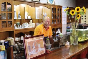 ご夫婦で営む喫茶店ぷちぷらんすの抹茶おぐらパフェは、ママが手間ひまかけて炊く評判の自家製あんこを使っています。あんことの相性がぴったりの濃厚な抹茶とバニラアイスクリーム、ホイップクリーム、季節のフルーツをたくさんのせた人気の和パフェ。注文を受けてから作る茹でたての白玉入り。もちもちの食感のアクセントを楽しませてくれます。