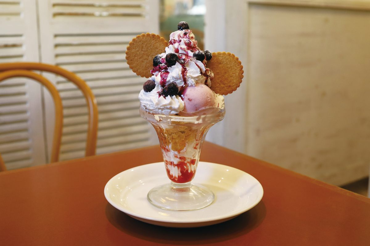 サンピノチオのブルーベリー&ストロベリーパフェは、バニラとストロベリーアイスクリームに、たっぷりの生クリームをトッピング。ソースはブルーベリーとストロベリーの2種類。ブルーベリーの爽やかな酸味がアクセントの、食べるごとに変化が楽しめる人気のパフェです。ビスケットの耳が付いた可愛いビジュアルも乙女心をくすぐります。 DATA