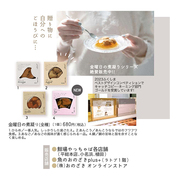 今回は、(株)おのざきの、「常磐もの」の魚を原料に使用した「金曜日の煮凝り」シリーズの新商品「鯛」をご紹介します。