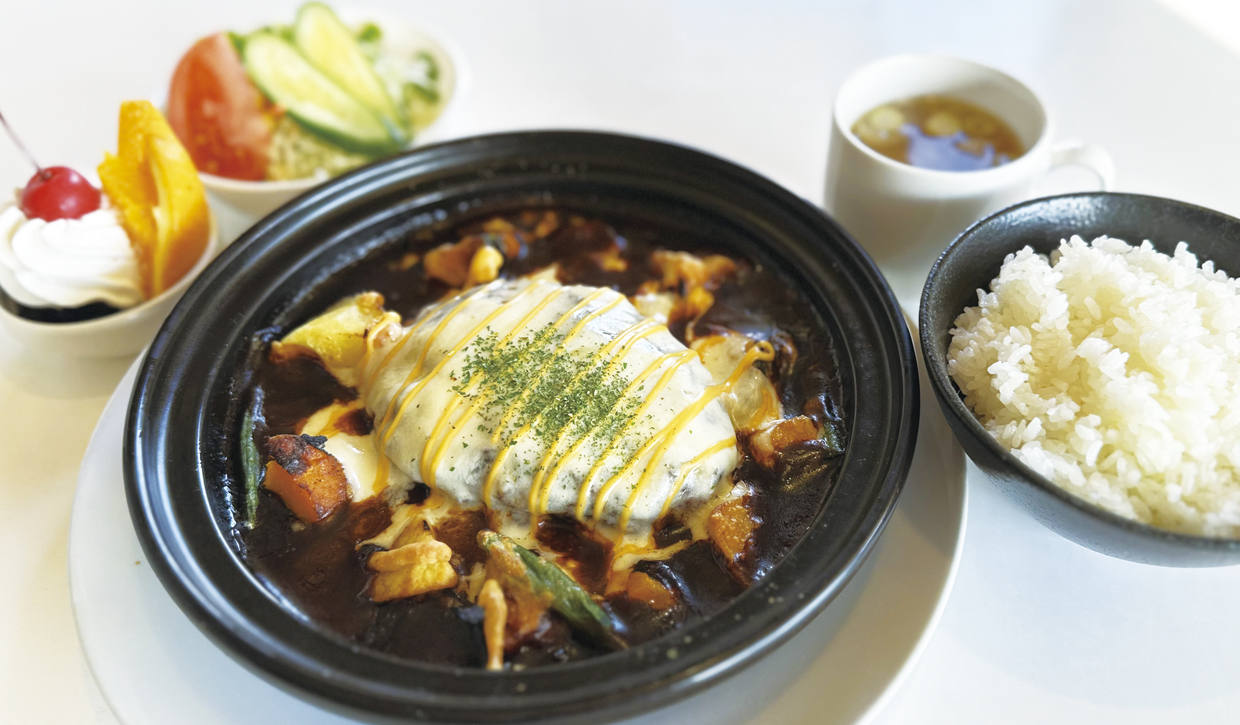 オープン当時からの味を大切に守り、ボリュームにも気を配りながら続けてきた定番メニュー。中でも人気なのが「とろ〜りチーズハンバーグ」。デミグラスソースでじっくり煮込んだハンバーグは、とろけるチーズが重なり、コクと旨みが口いっぱい広がります。ポテトやコーンなどの野菜も一緒に味わえる見た目以上の満腹感。セットにはごはんやスープ、サラダ、ミニデザートまで付いています。