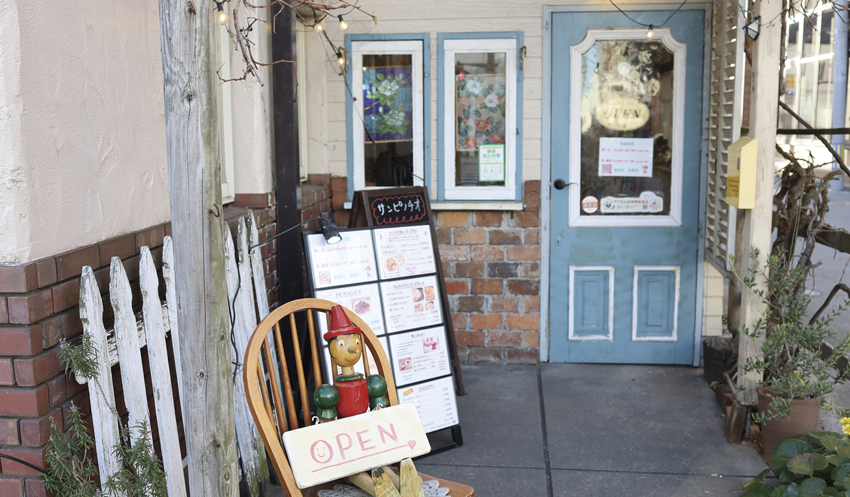 カントリー調のかわいいいインテリアに囲まれた、やさしくゆったりとした雰囲気が溢れる店内。ご夫婦で営むサンピノチオは今年29年目を迎えます。セットがお得な笑顔になれるランチ