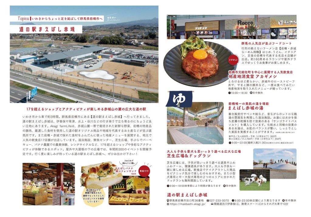 いわき市から車で約3時間。群馬県前橋市にある【道の駅まえばし赤城】へ行ってきました。道の駅まえばし赤城は、伊香保や草津、水上・谷川などの行き帰りで立ち寄るのにちょうど良い立地にあります。Akagi farmLifeは、赤城山麓一帯で栽培された新鮮な野菜、前橋の特産品の豚肉、厳選した食材を使用した道の駅オリジナル商品や地域を代表するお土産などが並ぶ直売所です。また前橋・赤城で採れた食材をふんだんに使った地産メニューを展開する、地元で人気の飲食店17店舗が出店しています。温浴施設、鮮魚センター、芝生広場、手ぶらでバーベキュー、バナナ農園での農業体験、レンタサイクルなど、17を超えるショップや多彩なアクティビティが体験できるスポット。屋外や大屋根の下の広場では、年間約300のイベントを開催予定です。行く度に楽しみが待っている道の駅まえばし赤城へ、ぜひお出かけ下さい!