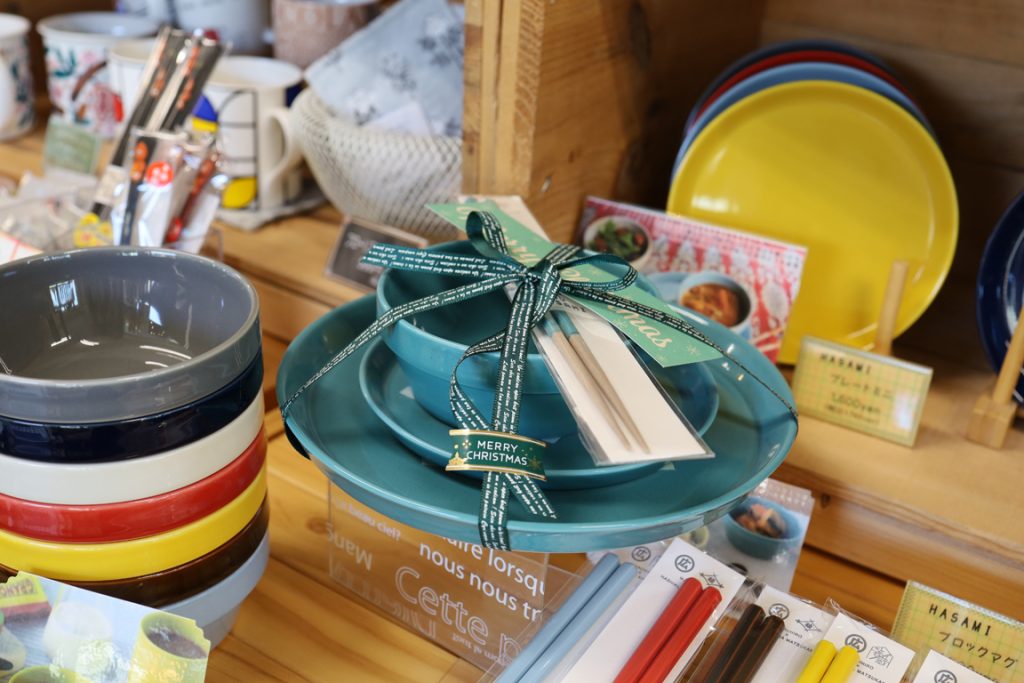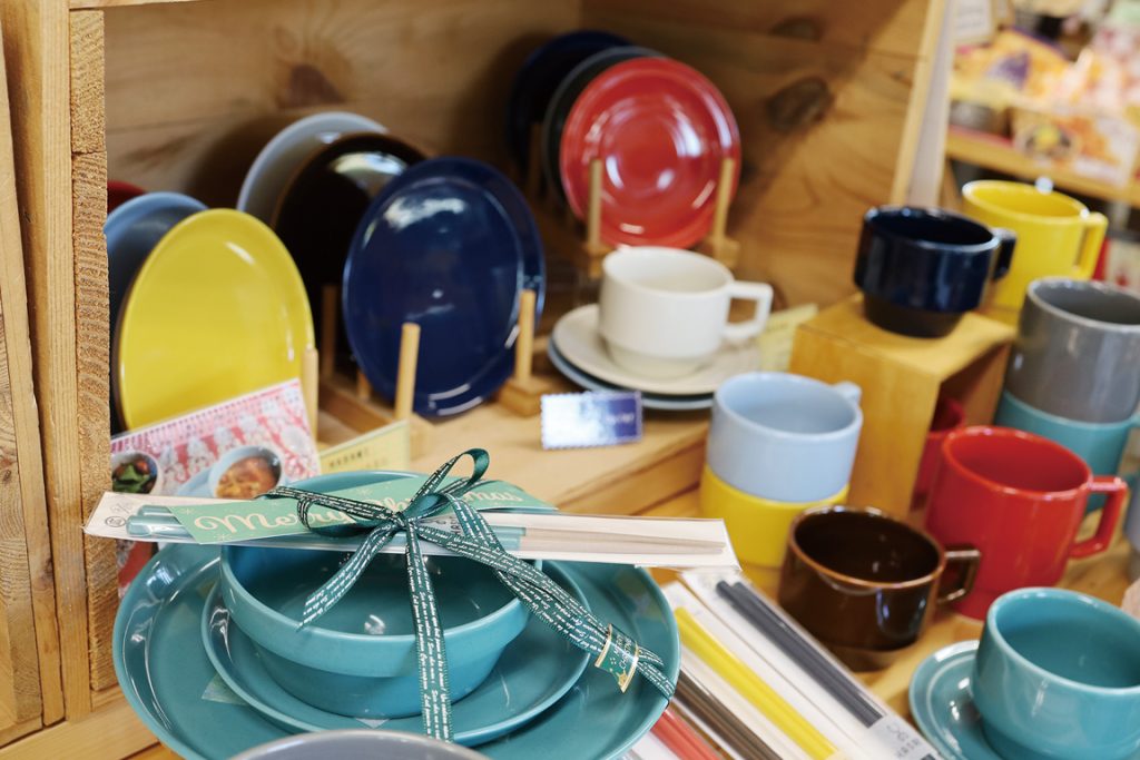 食器類、食料品、インテリア小物、日用雑貨など、心ときめくアイテムに出会える雑貨屋さん。人気は、青森県で生まれたハンドメイドガラス食器ブランド「津軽びいどろ」のグラスや盃、徳利など。 透明感と色彩豊かな美しさで、たくさんの人を魅了している、ギフトにも喜ばれるアイテムのひとつです。モダンなデザインの波佐見焼の食器類もファンが多く、普段使いもできるシンプルなデザインと手頃な価格が魅力。全国各地のお取り寄せグルメも多彩に揃う店内は、見ているだけでも、選ぶのも楽しいラインナップです。