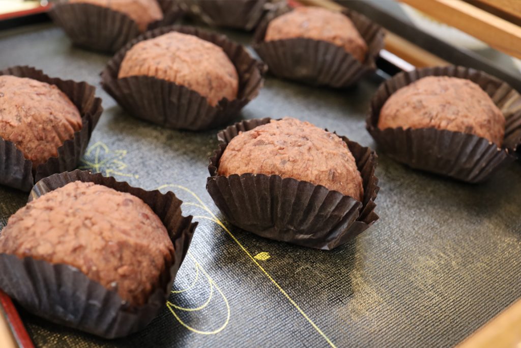 ●「日頃飲むお茶で心も体も元気になってほしい」と作られたお花茶のハーブティー。日本で親しまれているシソやハトムギ、黒豆などの素材をハーブティーとしてアレンジし、ブレンド。日常で気軽に楽しめる、飲みやすい味わいのハーブティーです。●北海道小樽市からお取り寄せしている、北海道産大納言あずきを使用した、おはぎも評判です。豆大福、草餅大福、わらび餅も並びます。