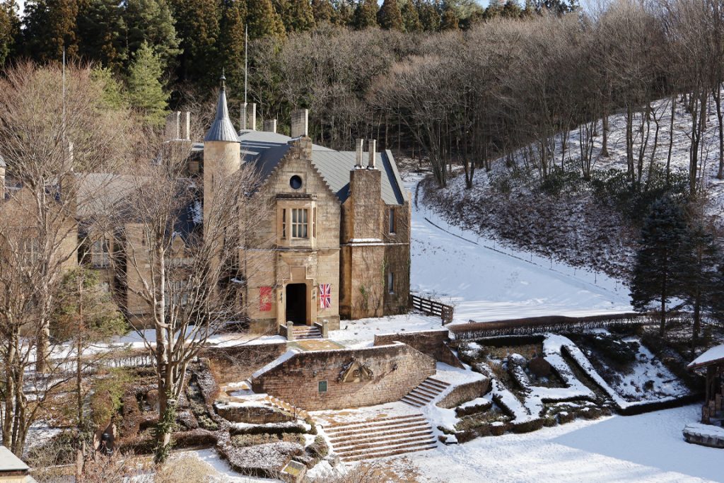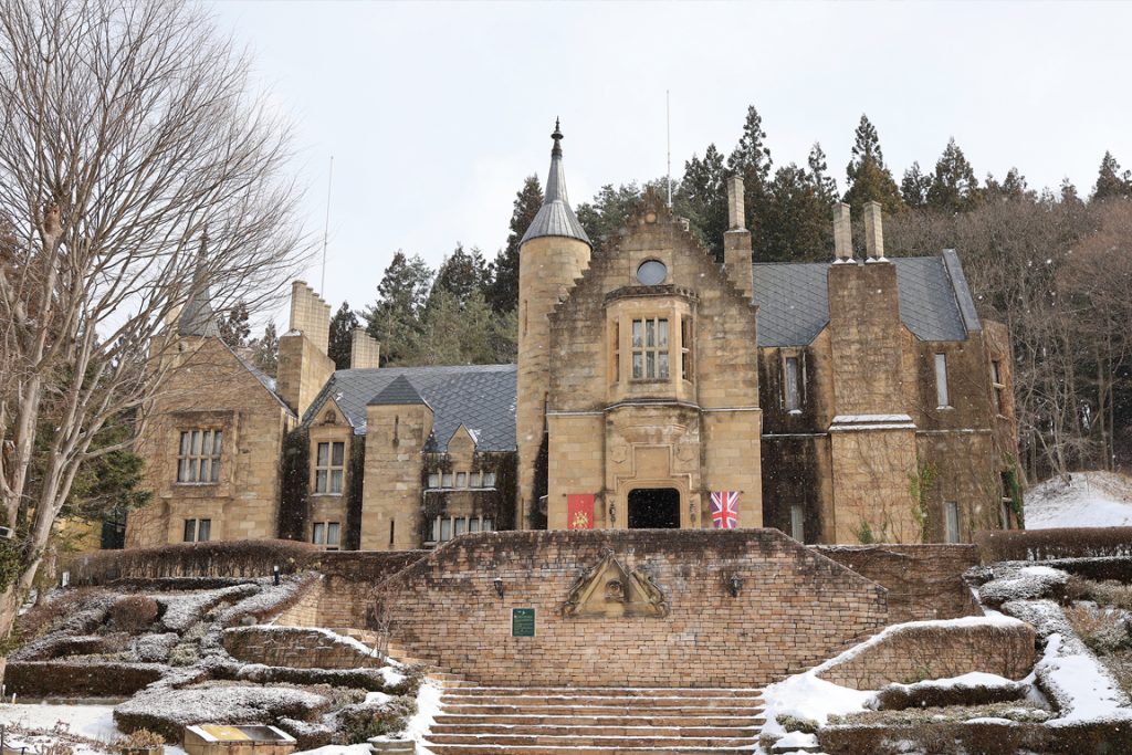 雄大な自然に囲まれた「ロックハート城」は、英国スコットランドより移築・復元された歴史ある本物のお城。その美しいロケーションが話題となり、ドラマや映画のロケ地としても登場しています。取材に伺ったこの日は、冬ならではの雪景色のお城を見ることができました。