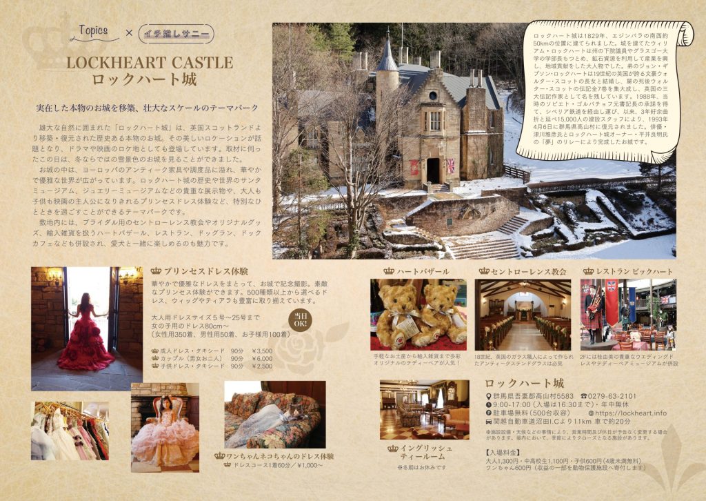 お城の中は、ヨーロッパのアンティーク家具や調度品に溢れ、華やかで優雅な世界が広がっています。ロックハート城の歴史や世界のサンタミュージアム、ジュエリーミュージアムなどの貴重な展示物や、大人も子供も映画の主人公になりきれるプリンセスドレス体験など、特別なひとときを過ごすことができるテーマパークです。
