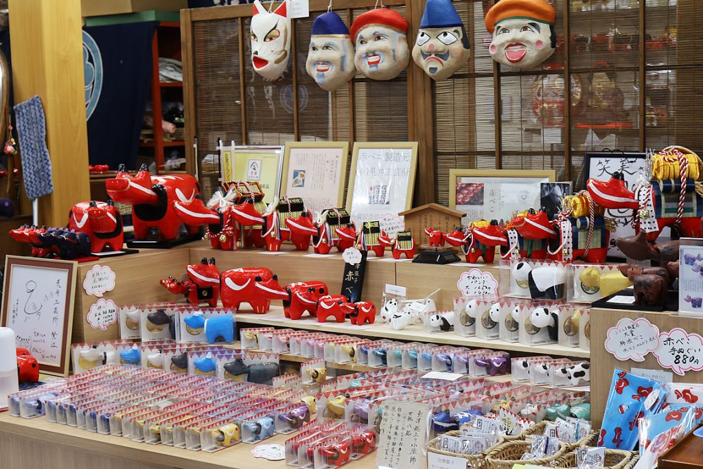 (有)荒井工芸所の赤べこは、昔ながらの張子の技術を大切に、全行程手作業で作り続けています。荒井工芸所が切り盛りする『笑美』は、赤べこをはじめ、変わり種の真ケルベコス、めたりっくべこ、パンダなど、様々な「張子」の民芸品が並ぶショップ。起上り小法師や手ぬぐい、ハンカチ、古布・着物なども取り揃えています。また白地のべこに、色や模様をつける『絵付け体験』も人気。世界に一つだけのオリジナルの赤べこを作ってみませんか。